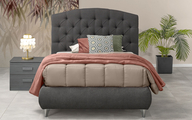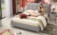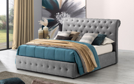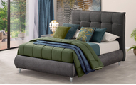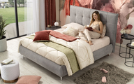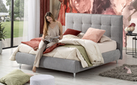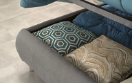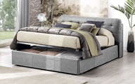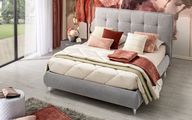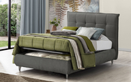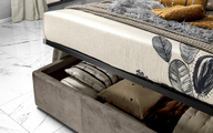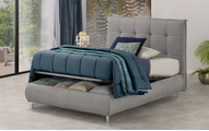Doppelbett „Deva“ mit Behälter aus silbernem Stoff cm. 186 x 207 x 124