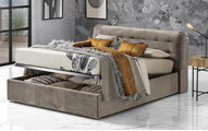 Deva Queen-Size-Bett mit Stauraum, Rauchfarbener Stoff cm. 146 x 207 x 124